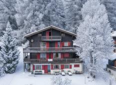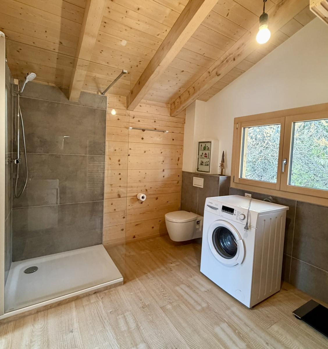 Das Chalet liegt unmittelbar neben einen kleinen Lärchenwald.