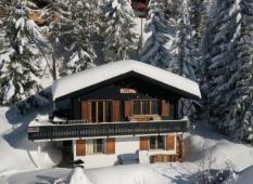 Das Chalet liegt etwas oberhalb vom Dorf in der Nähe eines kleinen Lärchenwaldes.